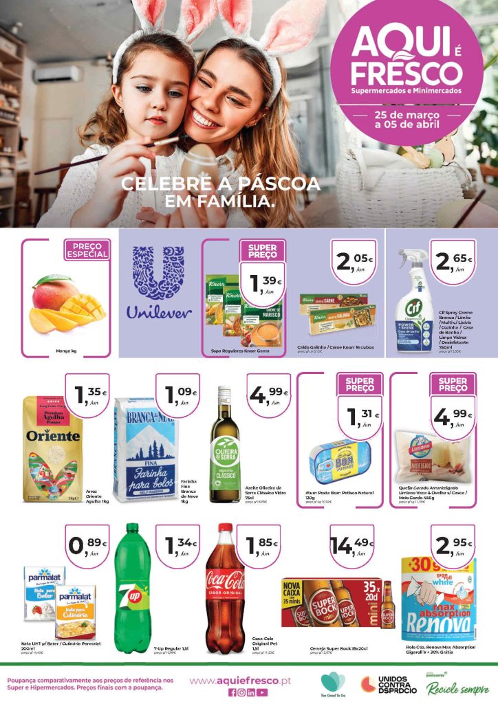 As melhores promoções nestes supermercados Folheto Aqui É Fresco 25 março a 5 abril.
