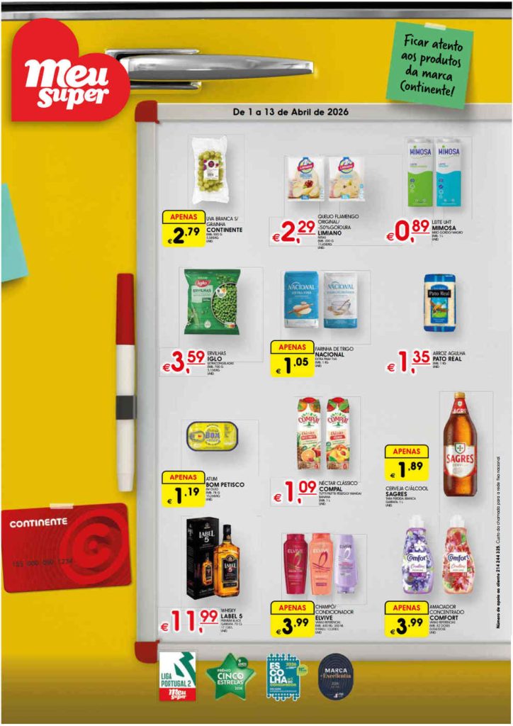 Os artigos em promoção no Folheto Meu Super 1 a 13 de abril.