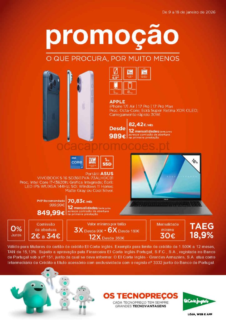 Algumas ofertas têm valores mais baixos que em semanas anteriores. Folheto El Corte Inglés 9 a 18 de janeiro,