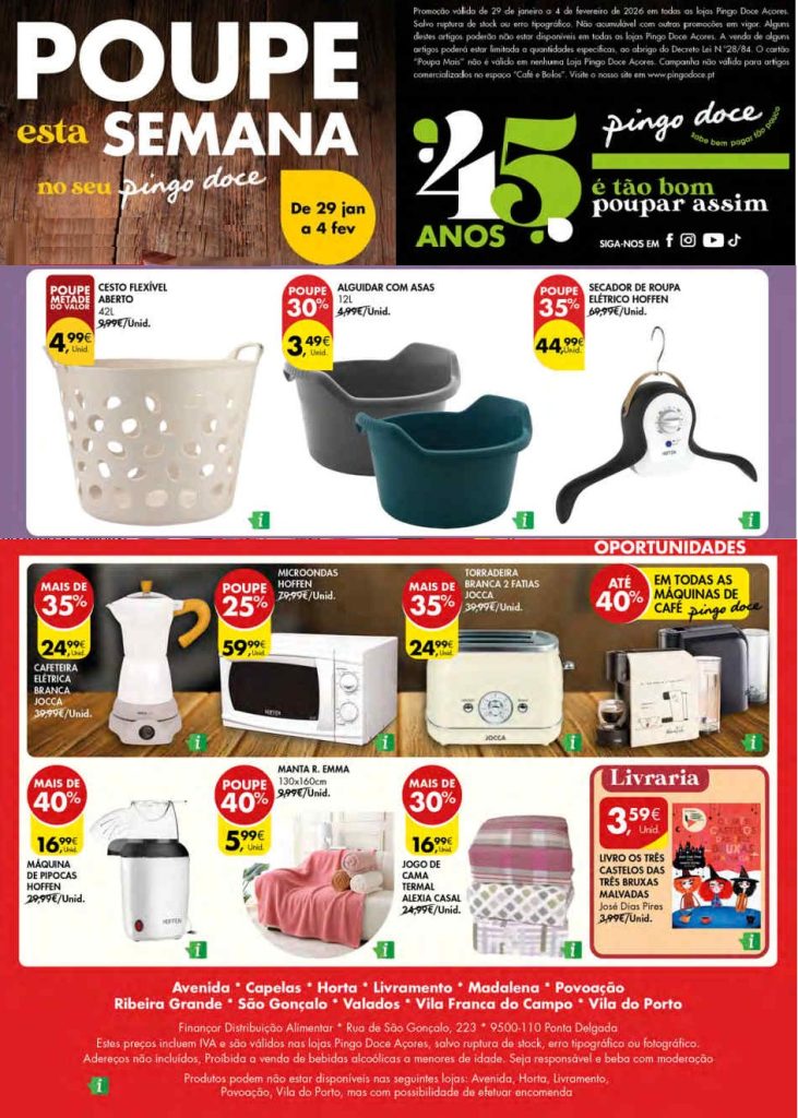 A campanha reforça descontos relevantes em artigos bazar procurados nesta altura do ano. Folheto Pingo Doce Açores 29 janeiro a 4 fevereiro,