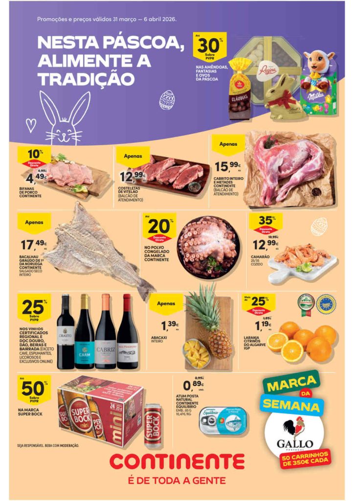 As promoções e preços válidos Folheto Continente 31 março a 6 abril.