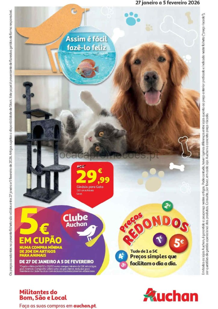 O novo conjunto de páginas mostra reduções úteis em compras familiares. Folheto Aqui É Fresco 28 janeiro a 8 fevereiro,