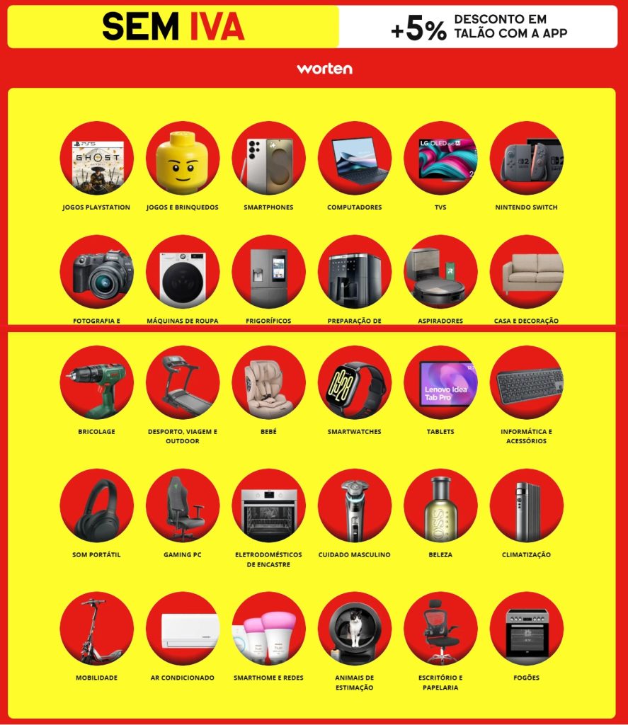 Nas compras em www.worten.pt e na App, o cliente terá de aplicar o código “IVA” no carrinho, para usufruir do desconto mencionado no nº 2, nos produtos abrangidos pela campanha.