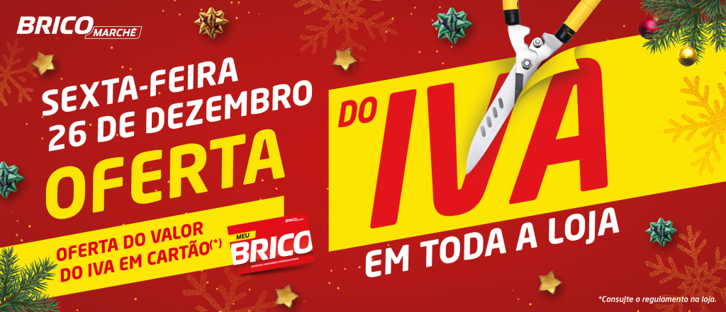 Os clientes que no dia 26 de dezembro de 2025, realizem uma ou mais compras numa loja BRICOMARCHÉ aderente, acumulam no cartão “Meu Brico” o valor da taxa máxima legal do IVA em vigor (atualmente 23%), creditado no cartão Meu Brico, aplicável às compras realizadas durante o período da campanha.