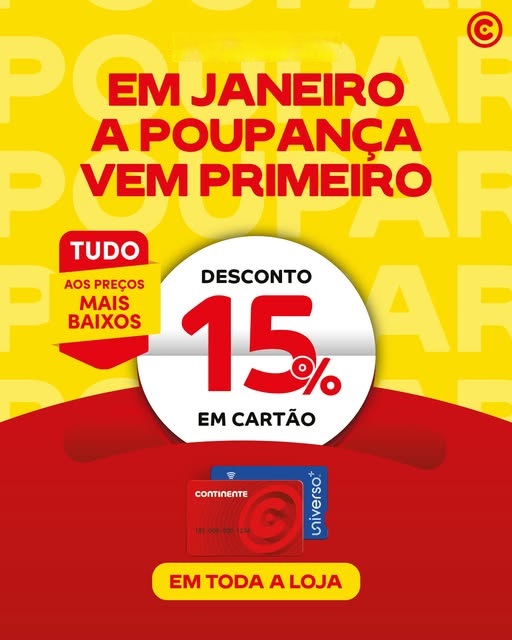 Novidades que chegam para mudar janeiro. Voltam os 15% desconto Toda a Loja Continente,