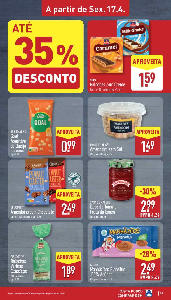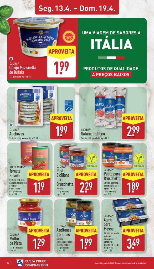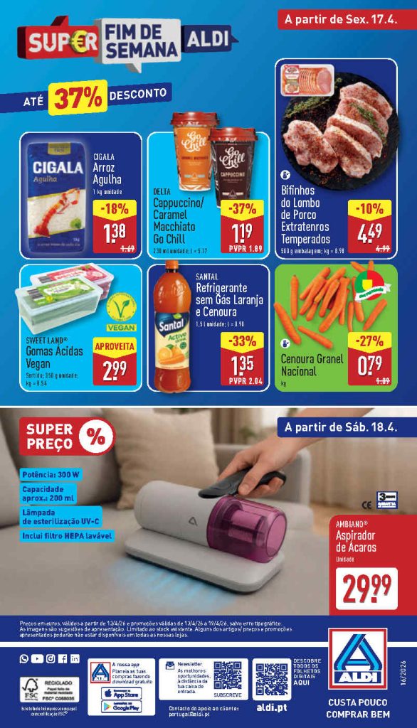 Os preços e promoções no Folheto Aldi 13 a 19 de abril.