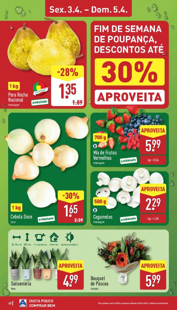 Descontos em frutas, legumes, flores a partir de segunda feira no Folheto Aldi 30 março a 5 abril.