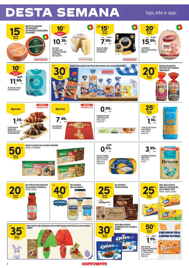 São produtos mais baratos que nas semanas anteriores e inclui Páscoa. Não se esqueçam que domingo a loja fecha mais cedo. Nos detergentes tenha em atenção ao preço por dose. Os artigos da marca Continente estão com mais preços competitivos frescos origem nacional em promoção. Consultem os Folhetos. A Antevisão Folheto!