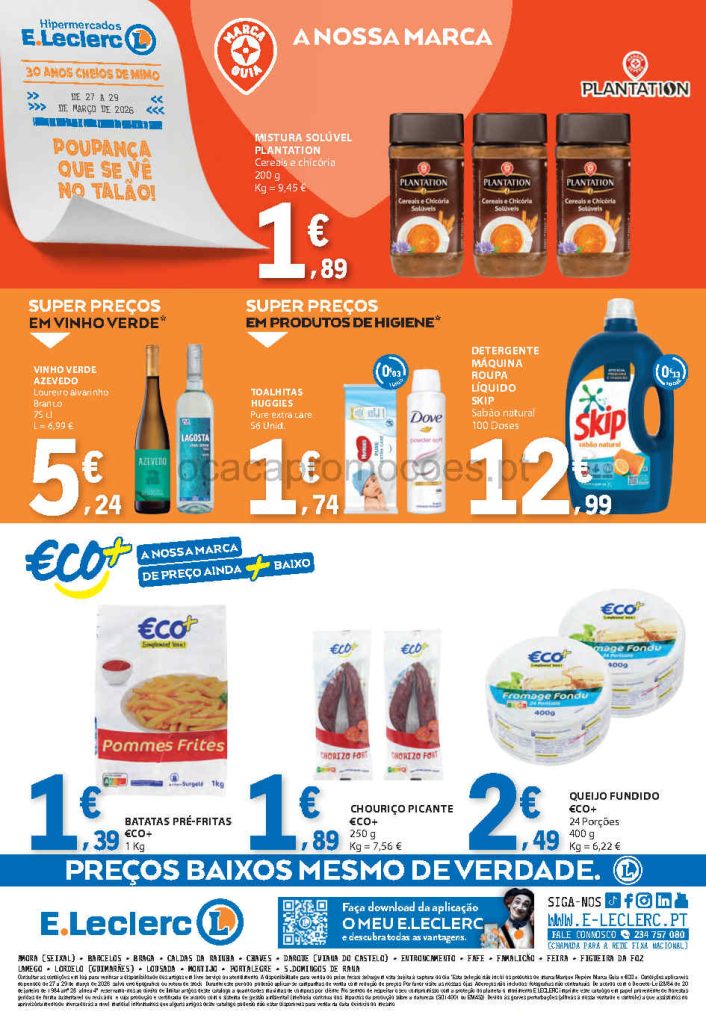 Novas promoções fim de semana para a lista de compras. Folheto E Leclerc 27 a 29 de março.