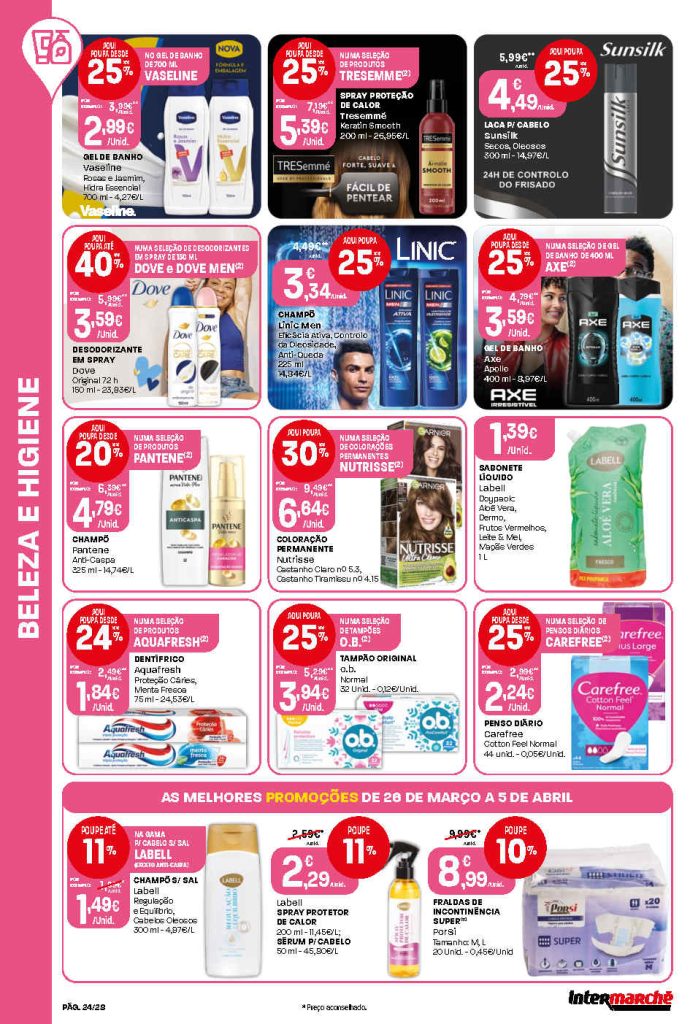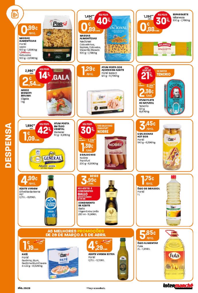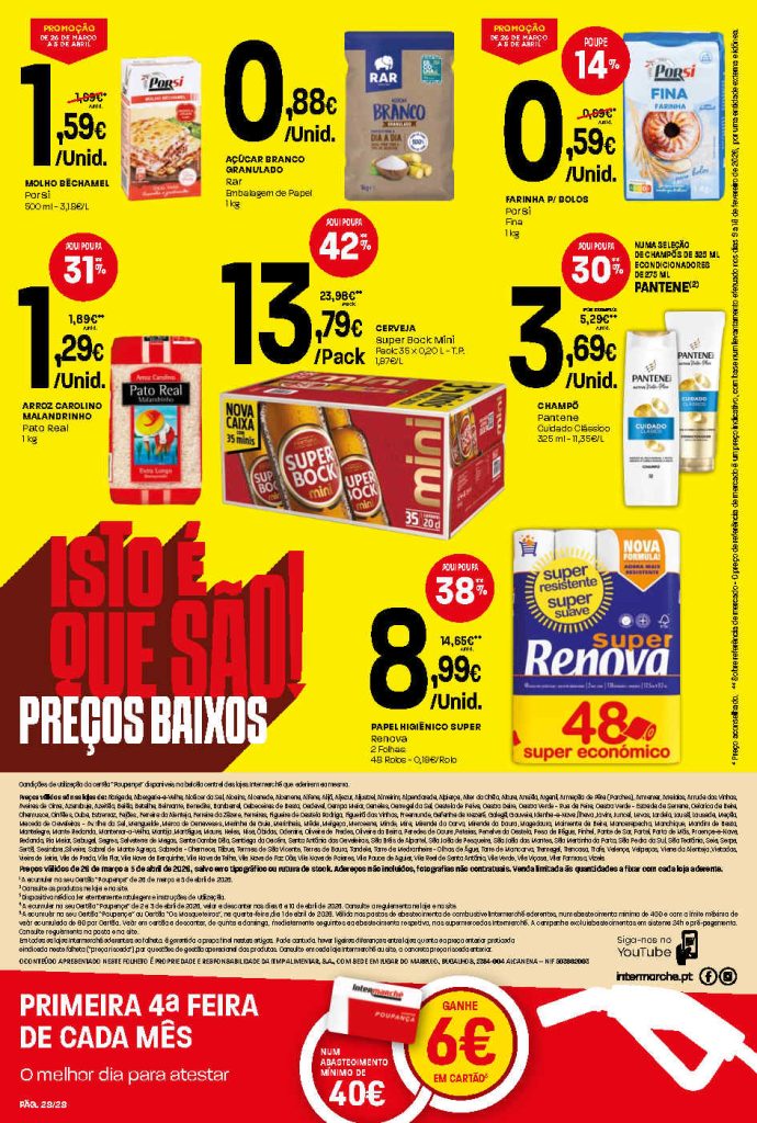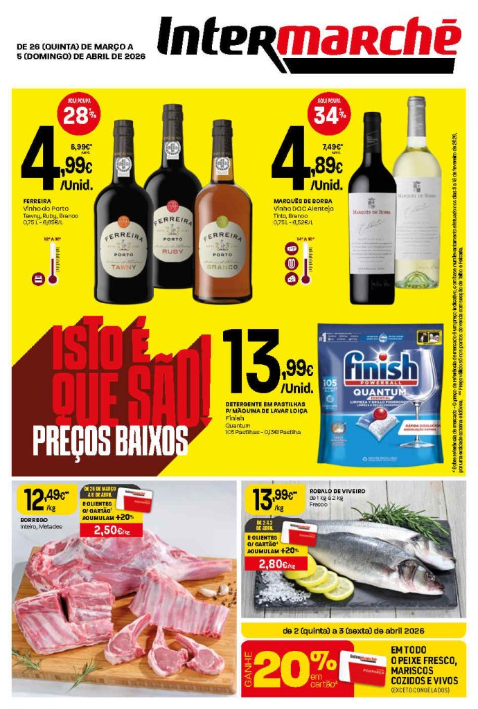 A antevisão novos preços baixos nas lojas Contact. Folheto Intermarché 26 março a 5 abril.