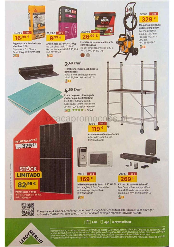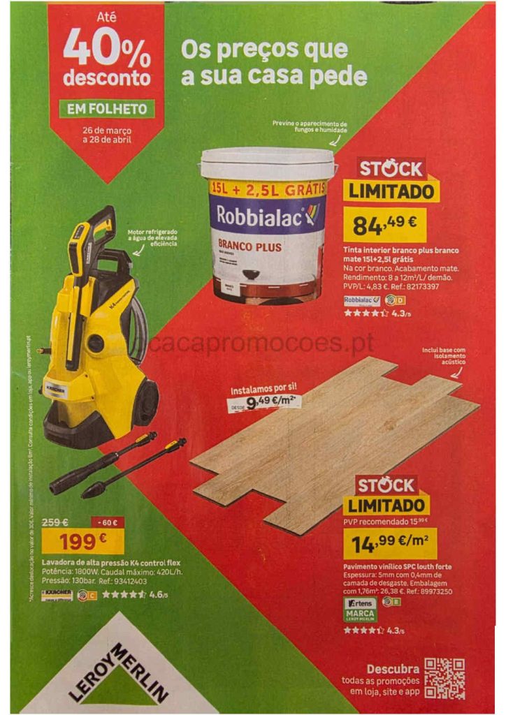 A antevisão Folheto Leroy Merlin com os preços que a sua casa pede 26 março a 28 abril.