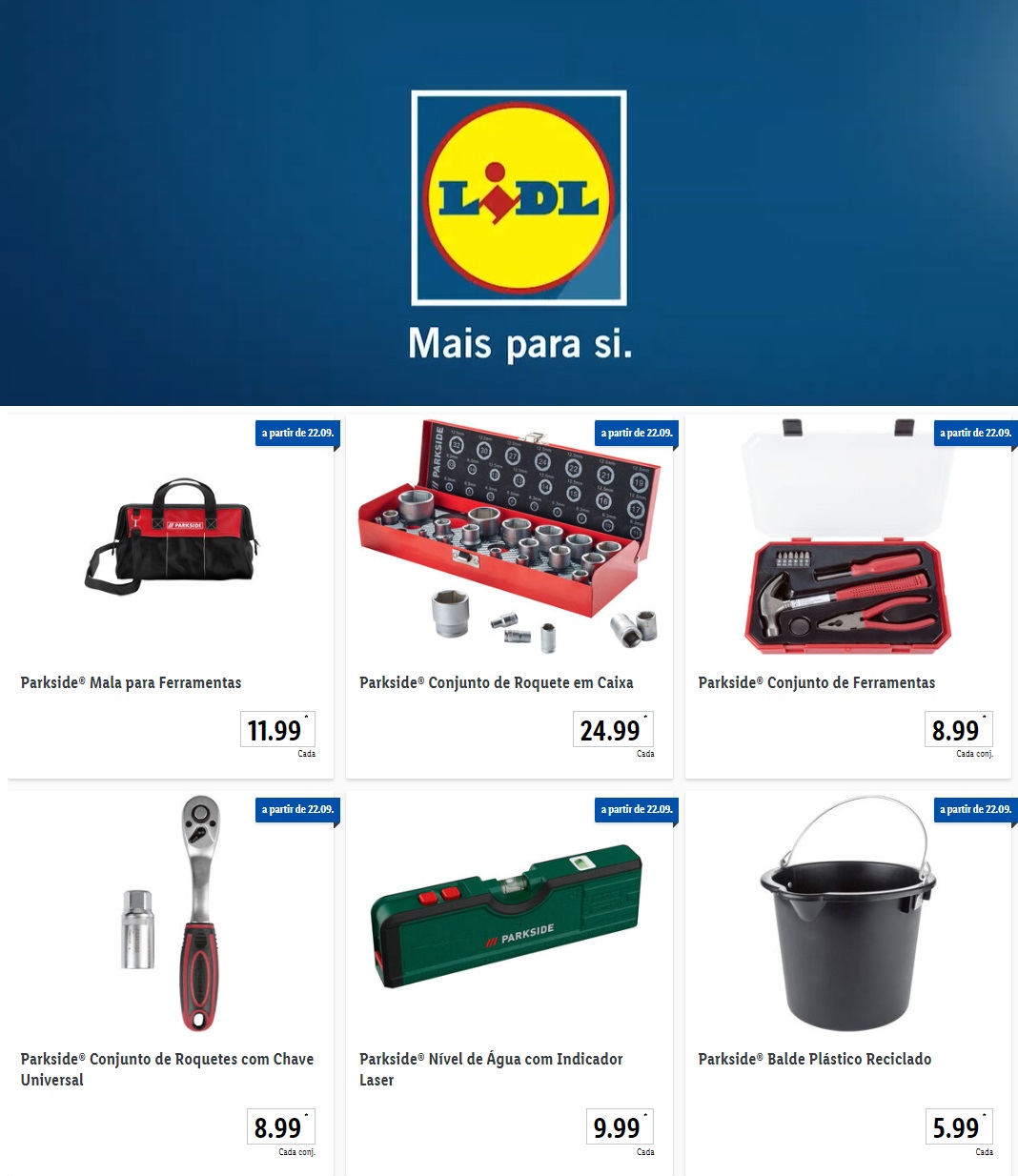 Antevisão Folheto LIDL BAZAR FERRAMENTAS Promoções 22 setembro a 25 setembro.