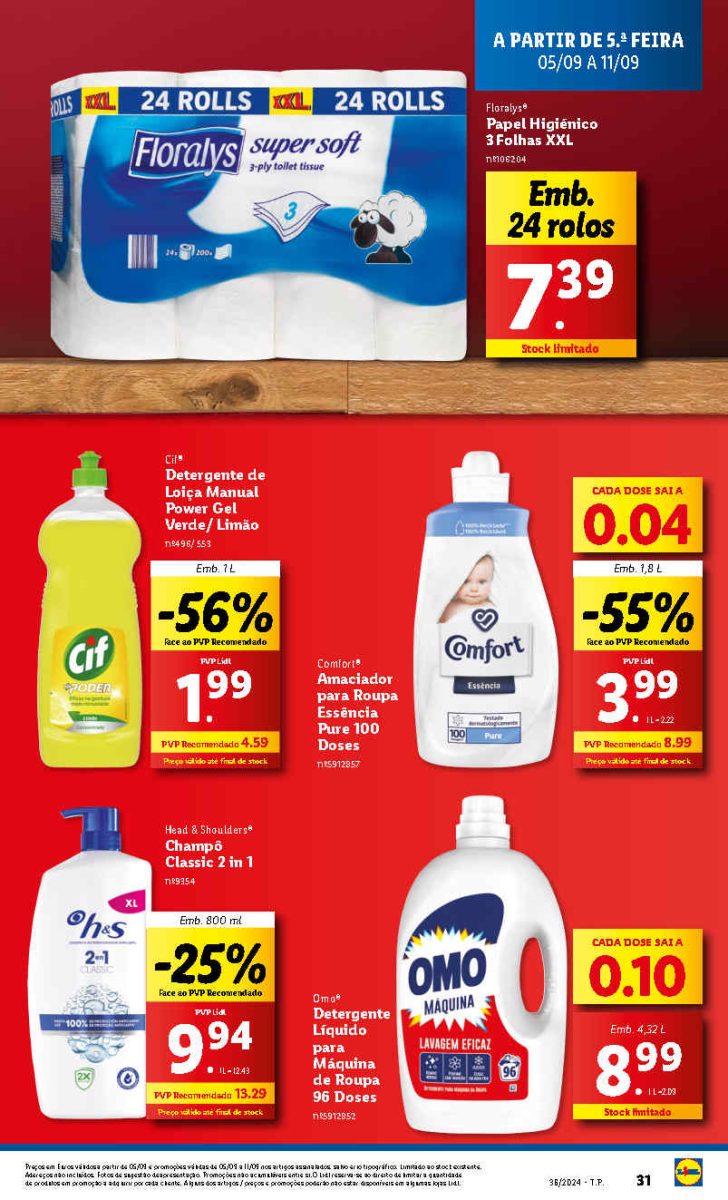 Antevisão Folheto LIDL Higiene e Limpeza Promoções 5 a 11 de setembro.