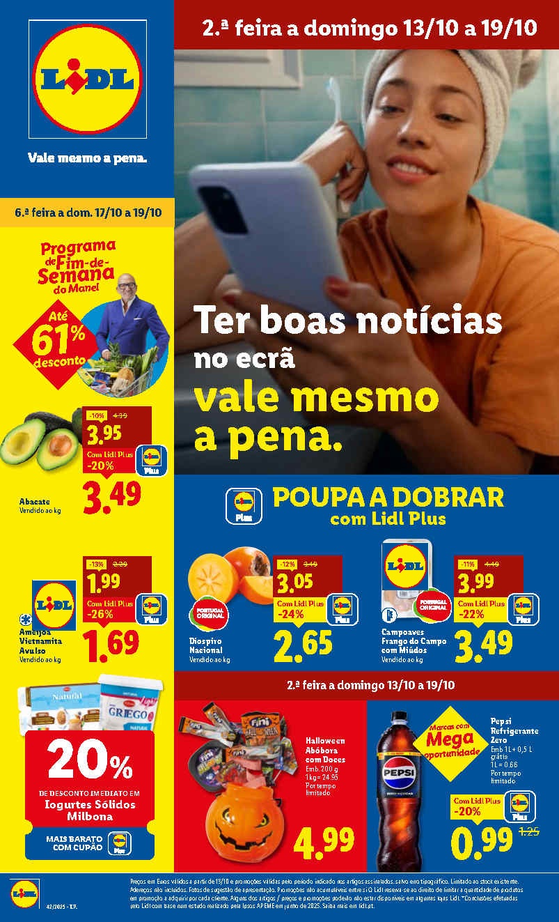 Uma semana repleta de boas surpresas. Folheto Lidl Promoções 13 a 19 de outubro, Esta loja costuma alternar promoções por semanas temáticas — esta edição segue essa lógica com boas ofertas. Aproveite a antevisão versão digital com ainda mais páginas, descontos, promoções, produtos no formato online para que saiba tudo em primeira mão. Especial Halloween. 🎃Antevisão … Continue a ler Antevisão Folheto Lidl Promoções 13 a 19 de outubro