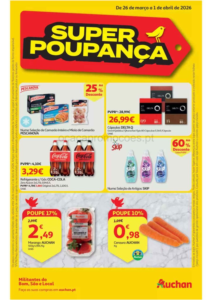 Novas oportunidades de poupança real. Após análise do folheto: Acumule com cartão Auchan os descontos para otimizar o seu orçamento familiar. O Caça Promoções está permanentemente atualizado com os folhetos supermercado. Inclui bazar e Páscoa a preço mais baixo que a semana anterior. Consultem os Folhetos. A Antevisão Folheto!