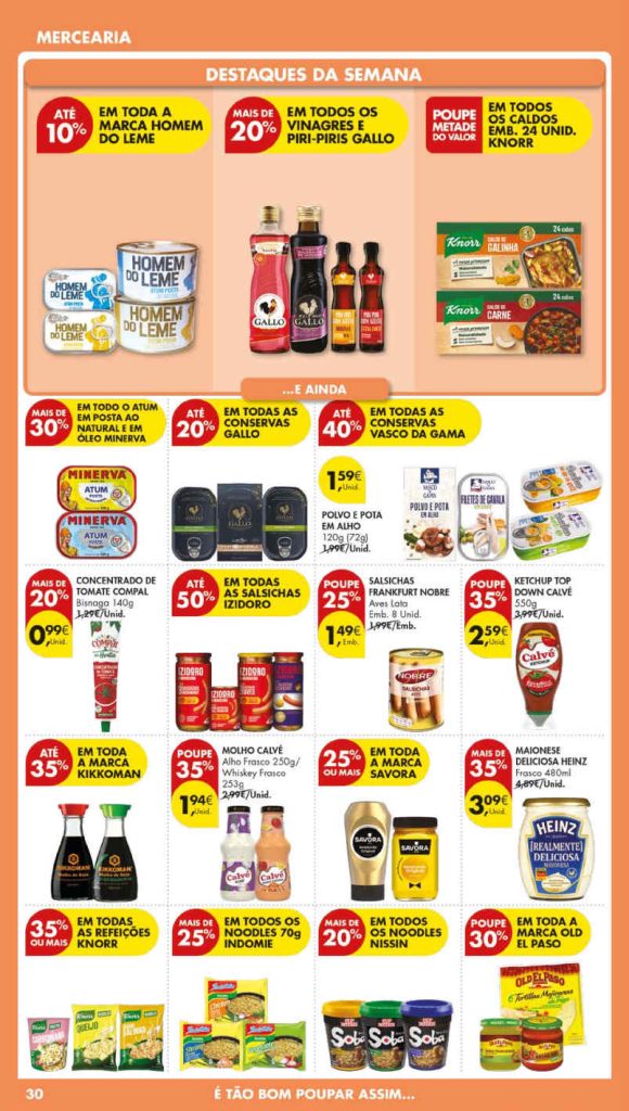 Os descontos diretos da semana. Use a app ou cartão Pingo Doce para otimizar o orçamento e o seu cabaz alimentar. Inclui bazar especialmente nas lojas de maior dimensão com mais stock e variedade. As promoções compensam com muitos artigos com baixa de preço em relação a semanas anteriores. Consultem os Folhetos. A Antevisão!