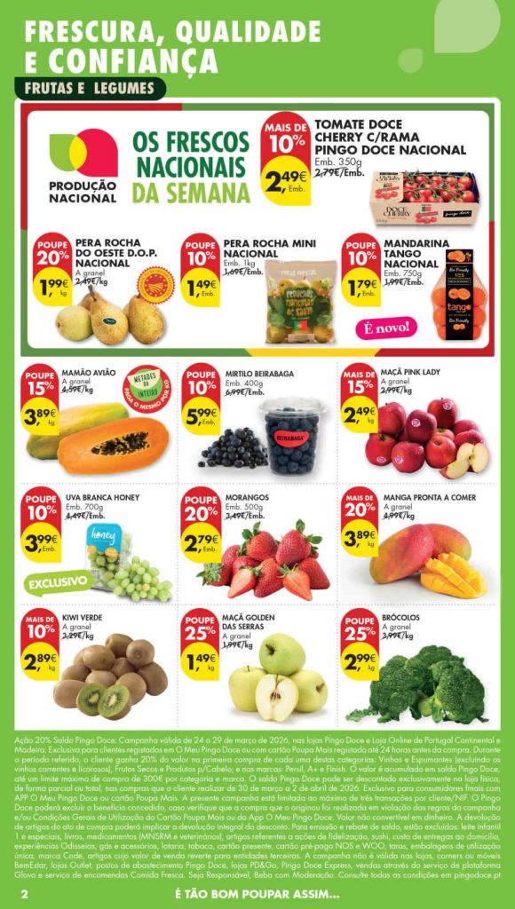 Promoções com boa relação preço/qualidade no Folheto Pingo Doce 24 a 30 de março.