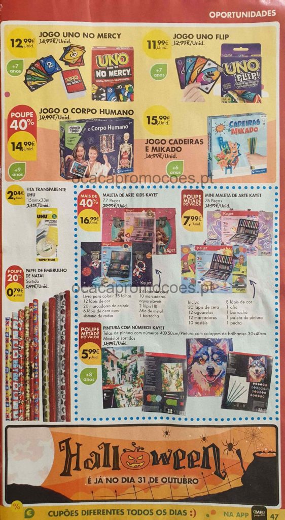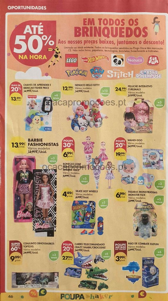 Exclusivo sempre no site O Caça Promoções encontra todas as promoções, descontos, folhetos para poupar diariamente e em primeira mão. Acumule com a nova campanha até 60% em todos os brinquedos. Inclui bazar, Halloween, especial Natal e mais. Consultem os Folhetos. Todo o Folheto Abaixo!🎯