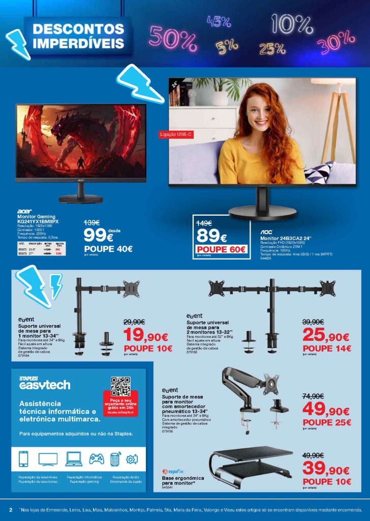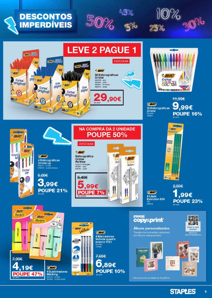 Os descontos até 50% no Folheto Staples 6 a 29 de abril.