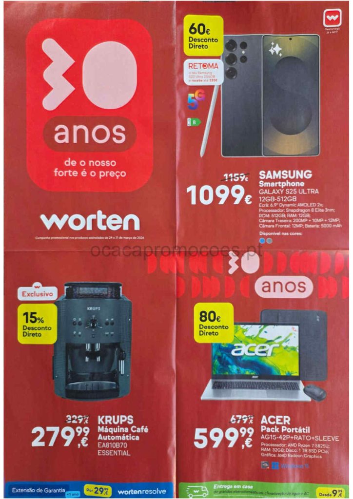 Novidades Worten com promoções ( até em cartão Continente ) nas várias categorias para comparar e poupar. Preço mínimo garantido, e especial 30 anos. Artigos com com stock limitado. Computadores, máquina de café, eletrodomésticos cozinha, televisões, gaming, som e mais. Consultem os Folhetos. A Antevisão Folheto!🎯