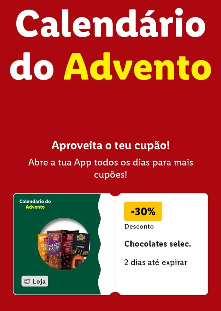 Aproveite já para guardar o cupão de hoje 9 de dezembro. São 30% desconto em Chocolates. As acumulações, avistamentos, comparações, dicas, sugestões de poupança, amostras, vales grátis e muitas surpresas atualizadas no site O Caça Promoções. 🎅consultem os Folhetos.