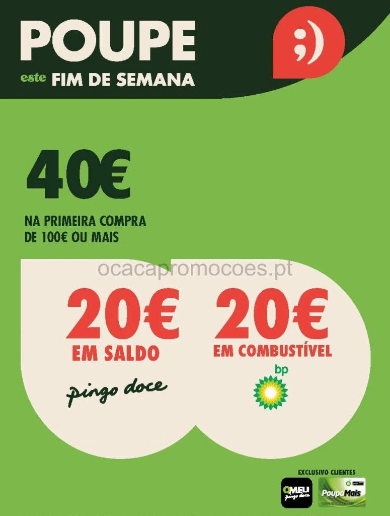Volta por 2 dias a oferta 20 € + 20€. Multiplicam assim as oportunidades em supermercado e combustível. A  Oferta de 40€ na primeira compra de 100€ ou mais. Assim 20€ em compras 🛒 e 20€ em vale combustível BP ⛽para usar em datas posteriores. Consultem os Folhetos. A Antevisão!🎯