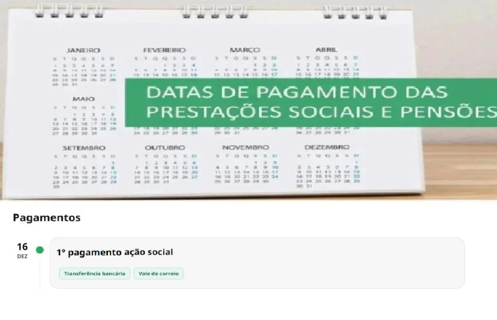 O pagamento mensal por Transferência bancária ou Vale de correio será a 16 de dezembro.📅