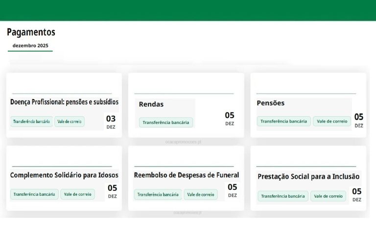 Toda a informação sobre pensões, subsídios, prestações sociais, pagos através de transferência bancária ou vale de correio.📅 Consulte ainda mais artigos Segurança Social aqui no site O Caça Promoções. A informação é diariamente atualizada.📅 Após os pagamentos de novembro, estes são os subsídios pagos na primeira quinzena dezembro; 3 de dezembro➡️ Doença profissional 5 de dezembro➡️ Rendas 5 … Continue a ler Benefícios: Datas pagamento Segurança Social na primeira quinzena dezembro