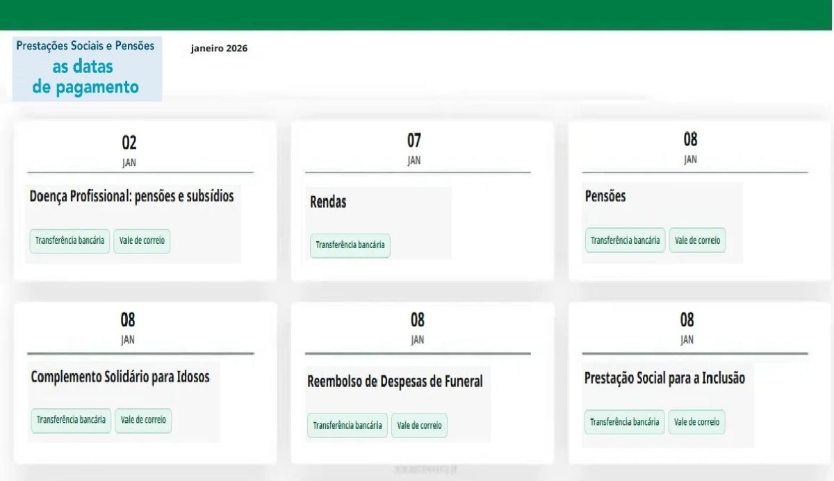 Benefícios: Datas pagamento Segurança Social na primeira quinzena janeiro