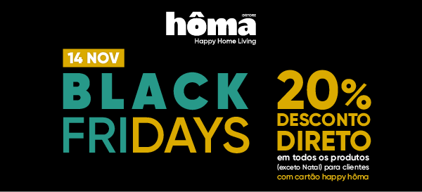 (exceto Natal)… Os clientes que tenham cartão happy hôma têm 20% de desconto DIRETO em todos os produtos (exceto Natal),