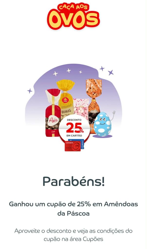 Aproveite já para guardar o cupão de hoje 1 de abril📅. São 25% desconto cartão Continente em amêndoas de Páscoa. As acumulações, avistamentos, comparações, dicas, sugestões de poupança, amostras, vales grátis e muitas surpresas atualizadas no site O Caça Promoções. Consultem os Folhetos🎯