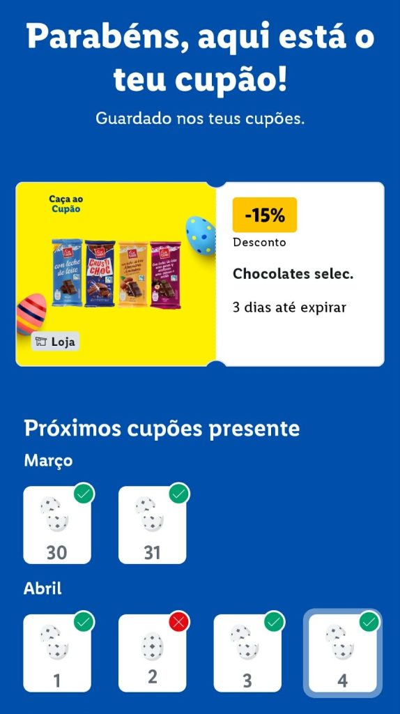 Aproveite já para guardar o novo cupão de hoje 4 de abril📅. São 15% desconto em chocolates selecionados. As acumulações, avistamentos, comparações, dicas, sugestões de poupança, análises, amostras, vales grátis e muita informação atualizada no site O Caça Promoções. Consultem os Folhetos