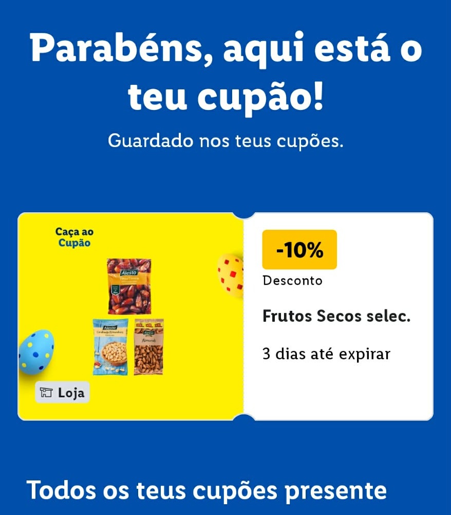 Aproveite já para guardar o novo cupão de hoje 5 de abril📅. São 10% desconto em frutos secos selecionados. As acumulações, avistamentos, comparações, dicas, sugestões de poupança, análises, amostras, vales grátis e muita informação atualizada no site O Caça Promoções. Consultem os Folhetos