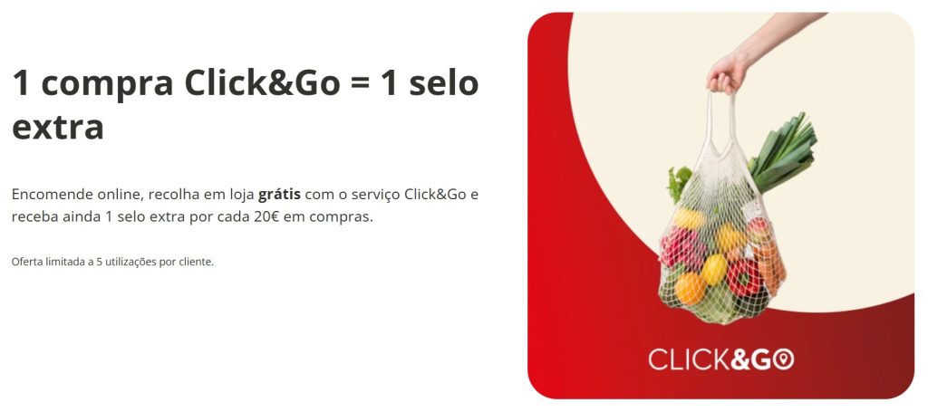 – 1 selo por cada compra mínima de 20€ no serviço Click&Go (limitada a 5 utilizações do serviço por cliente).
