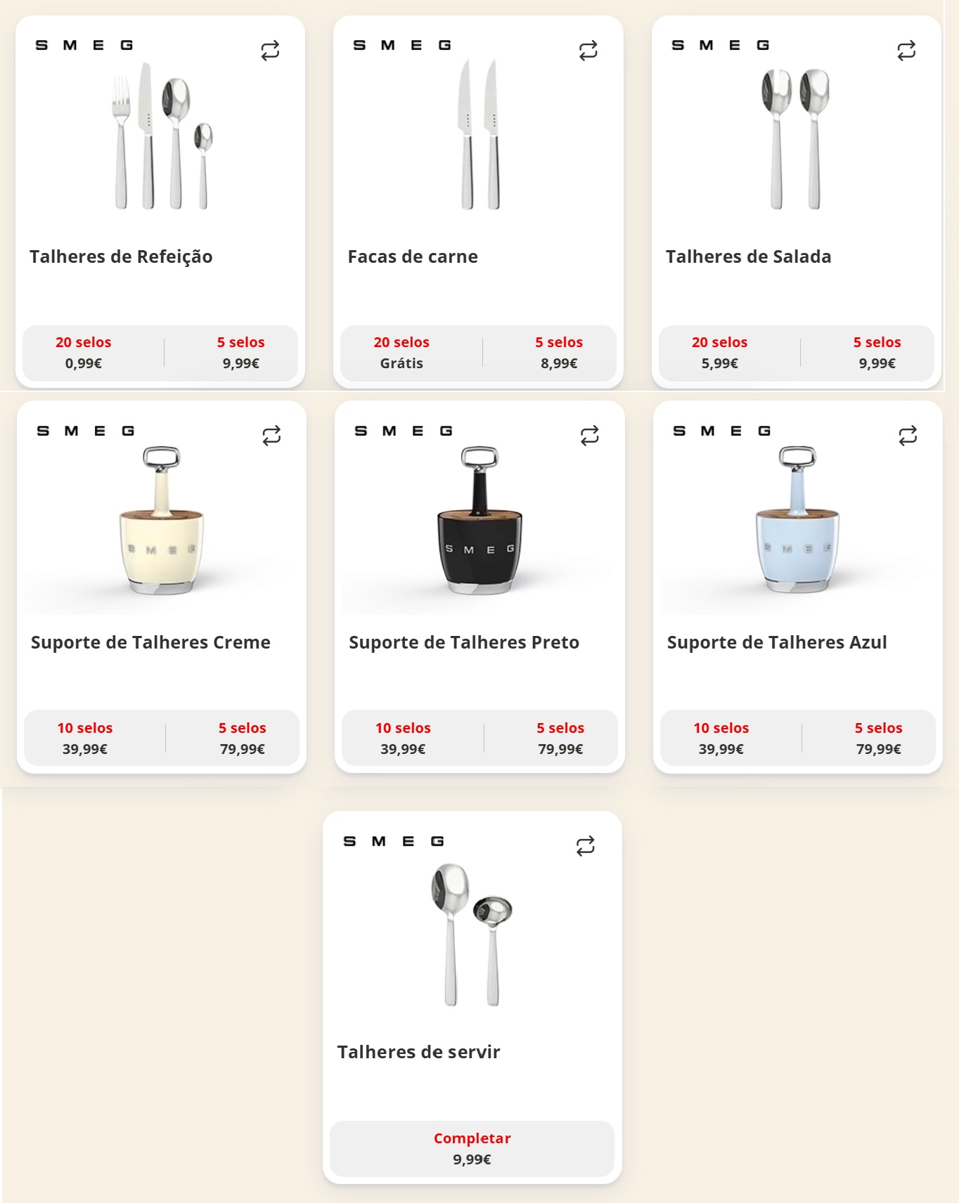A campanha que avisei em antevisão decorre de 17 de novembro de 2025 a 22 de fevereiro de 2026 nas lojas Continente, Continente Modelo e Continente Bom Dia. Faça compras, junte selos e troque-os por peças da nova coleção. Conheça a gama e descubra quantos selos precisa para colecionar cada peça deste faqueiro SMEG exclusivo. 20€ … Continue a ler Continente: Conheça já a nova campanha Smeg com selos