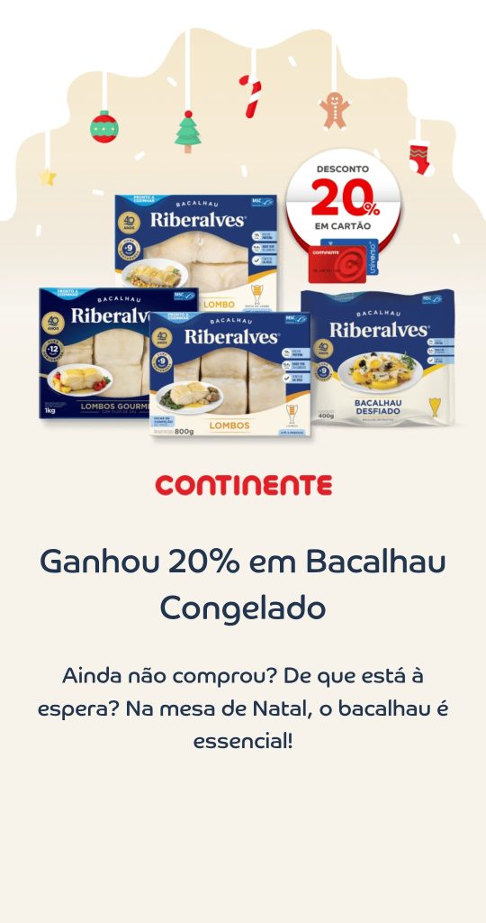 Aproveite já para guardar o cupão de hoje 18 de dezembro📅. São 20% desconto cartão Bacalhau congelado! As acumulações, avistamentos, comparações, dicas, sugestões de poupança, amostras, vales grátis e muitas surpresas atualizadas no site O Caça Promoções. Consultem os Folhetos.
