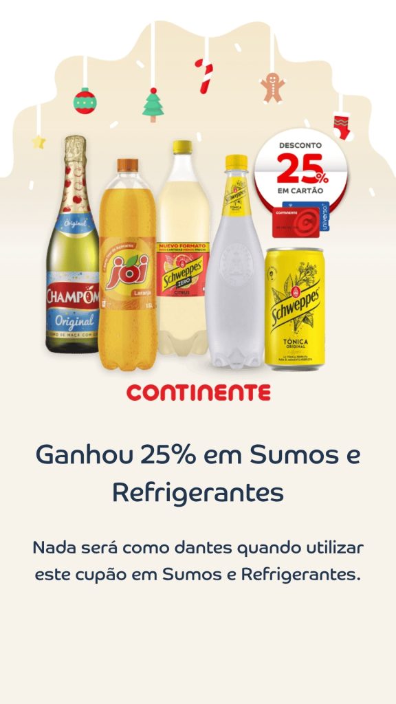 Aproveite já para guardar o cupão de hoje 21 de dezembro📅. São 25% desconto cartão Sumos e refrigerantes! As acumulações, avistamentos, comparações, dicas, sugestões de poupança, amostras, vales grátis e muitas surpresas atualizadas no site O Caça Promoções. Consultem os Folhetos.