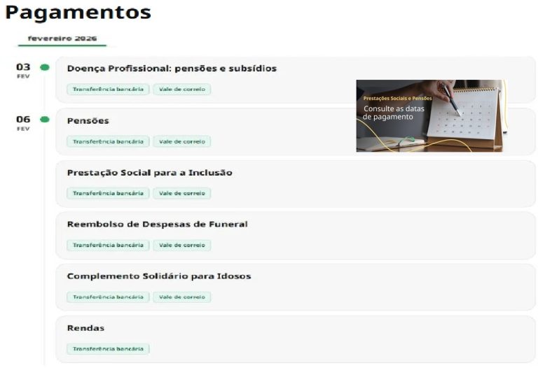Estes são os dias de pagamento antecipados da Segurança Social em fevereiro 2026, A informação mais atualizada em pensões, subsídios, prestações sociais pagos através de transferência bancária ou vale de correio.📅 Os respetivos pagamentos serão nas datas abaixo mencionadas. Consulte ainda mais artigos Segurança Social aqui no site O Caça Promoções.⏰ Pagamentos Doença profissional – Pensões … Continue a ler Datas de Pagamento Segurança Social: Antecipação Subsídios e Pensões em fevereiro