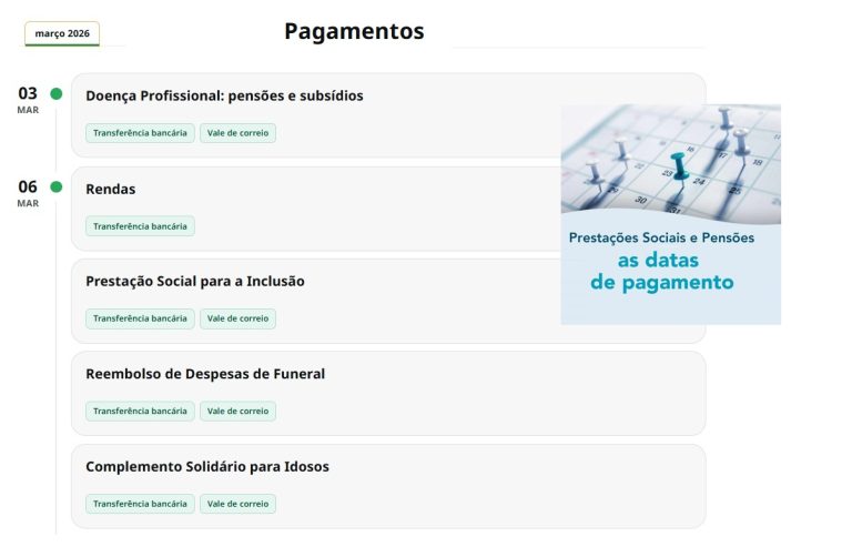 Estes são os dias de pagamento antecipados da Segurança Social em fevereiro 2026, A informação mais atualizada em pensões, subsídios, prestações sociais pagos através de transferência bancária ou vale de correio.📅 Os respetivos pagamentos serão nas datas abaixo mencionadas. Consulte ainda mais artigos Segurança Social aqui no site O Caça Promoções.⏰ Pagamentos Doença profissional – Pensões … Continue a ler Datas de Pagamento Segurança Social: Antecipação Subsídios e Pensões em março