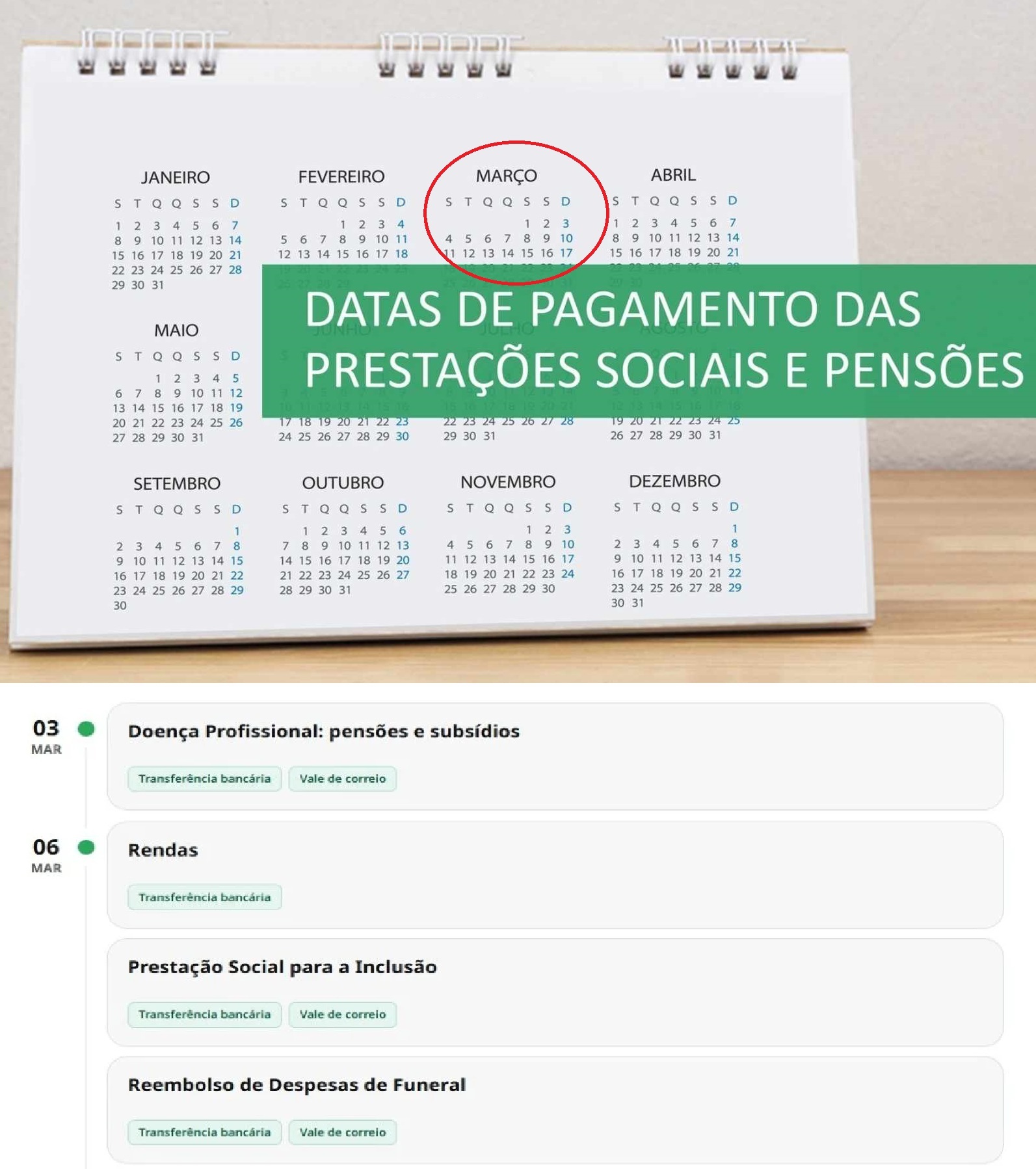 Datas pagamento Segurança Social de março – O Calendário Subsídios