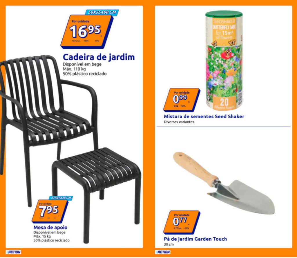 Cadeira de jardim a 16,95€ embalagem.