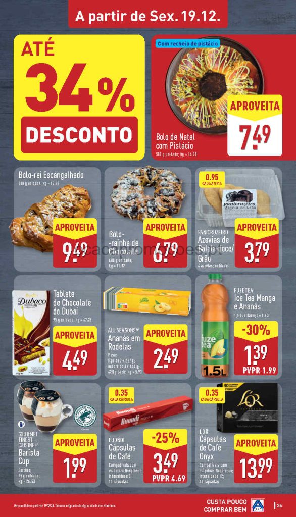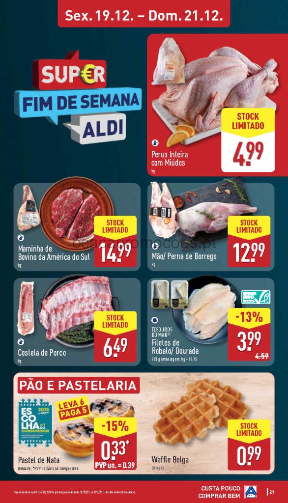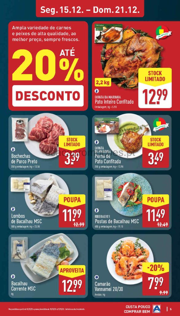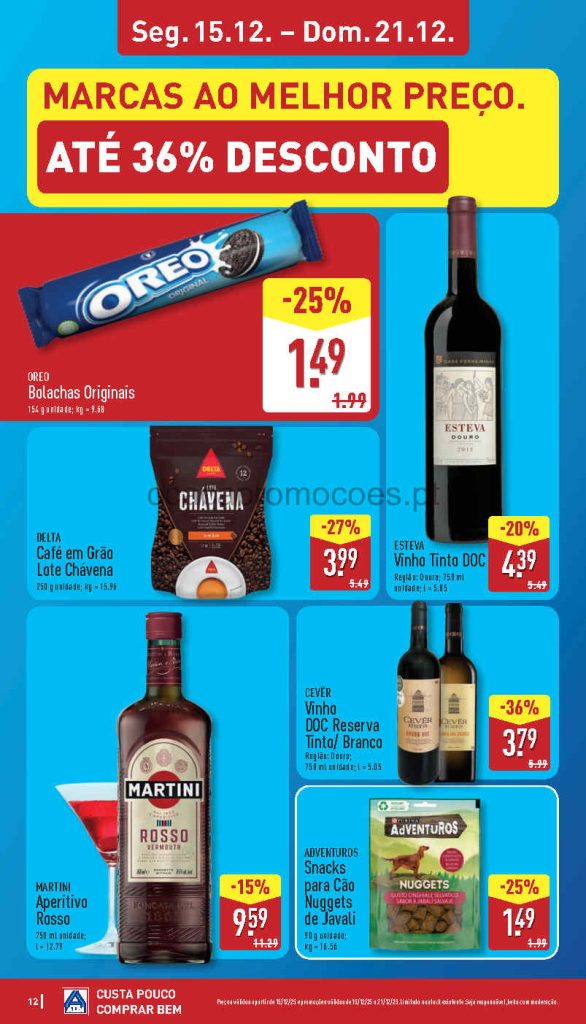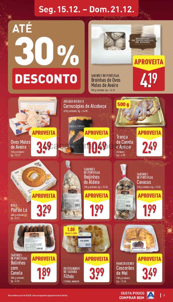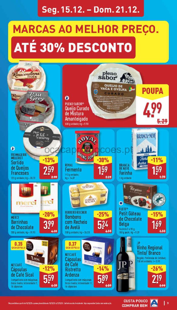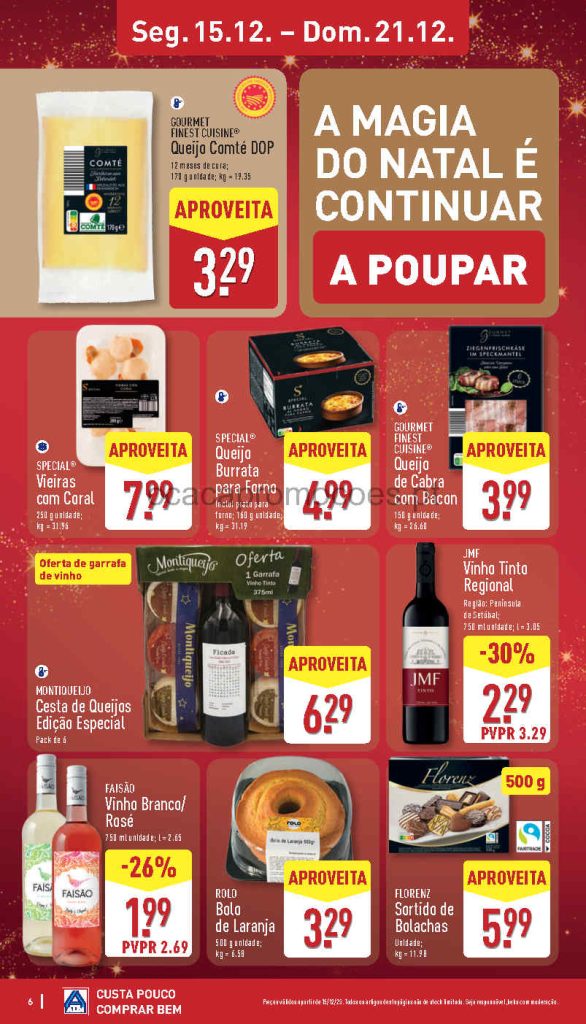 O conjunto de promoções inclui opções atrativas para compras grandes e pequenas. Folheto Aldi 15 a 21 de dezembro,