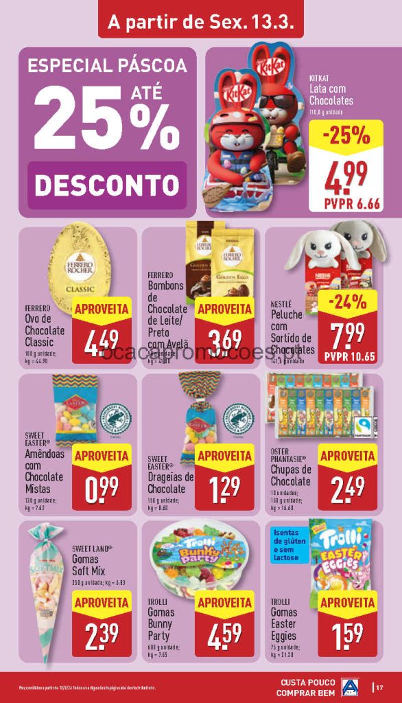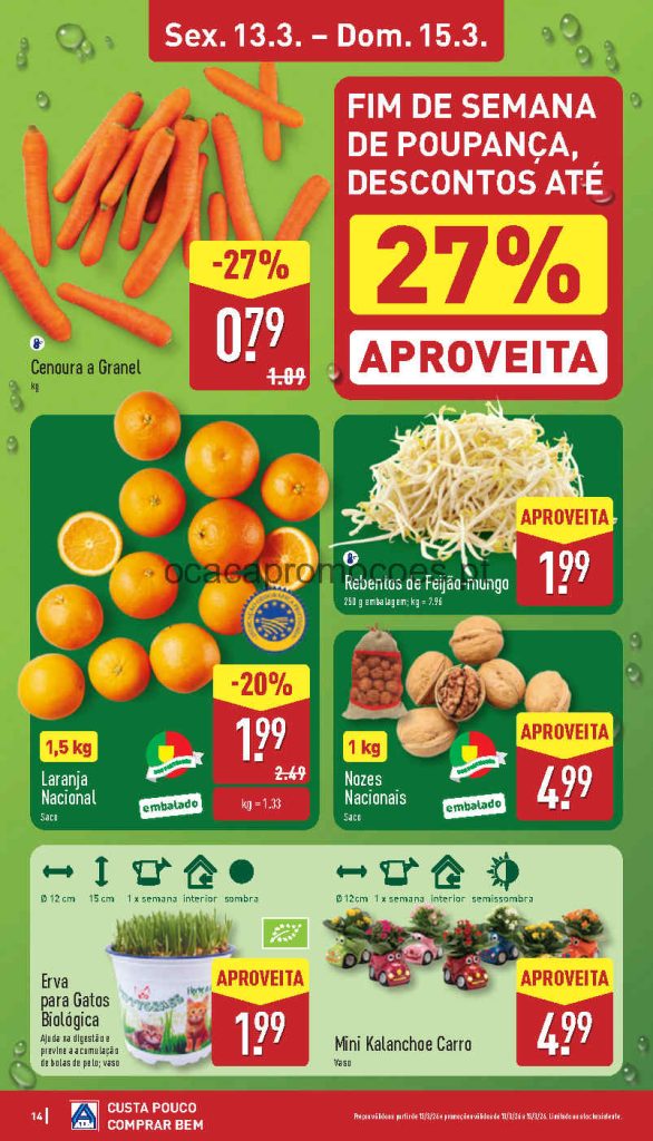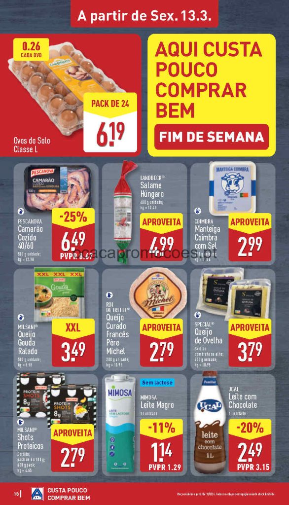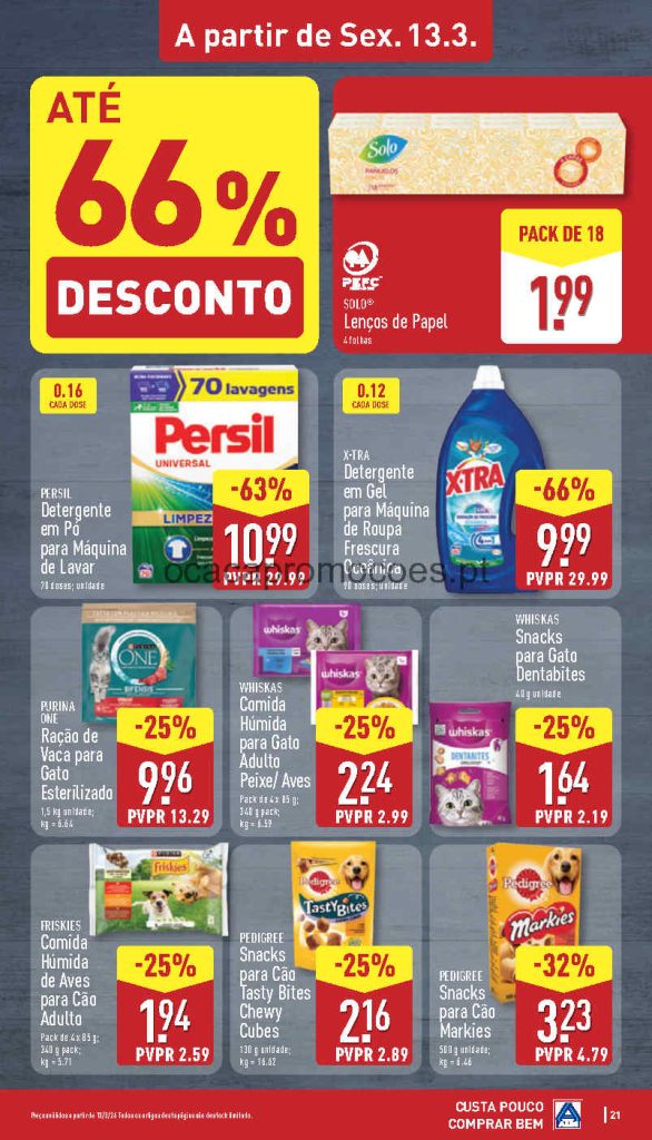 Todos os descontos são diretos, deve ter sempre atenção ao preço por dose /por kilo, atenção às validades e preços. Faça a lista de compras antecipada para otimizar a poupança. Boa relação qualidade e preço em bazar no Aldi mas atenção aos stocks limitados ( aproveite como eu logo no inicio da campanha ). As campanhas iniciam em datas diferentes mas estão assinaladas em cada página. Consultem os Folhetos. A Antevisão Folheto!🎯
