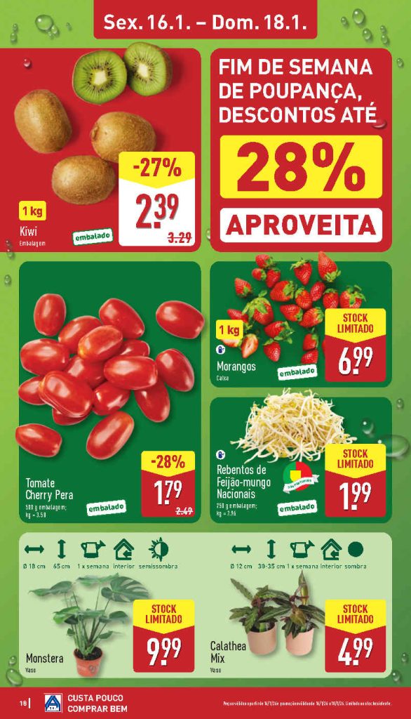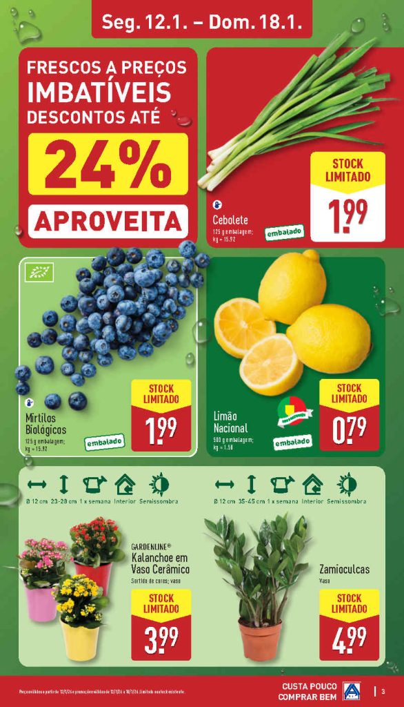 As novidades incluem descidas consistentes em carne, peixe, mercearia. Folheto Aldi Frescos 12 a 18 de janeiro,