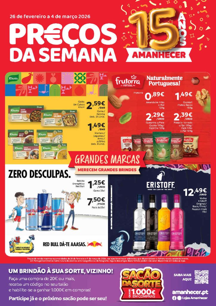Promoções para celebrar os 15 anos das lojas Amanhecer em Portugal.