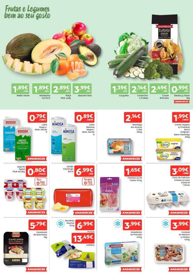 Leite magro ou meio gordo Amanhecer a 0,79€ unidade e mais,