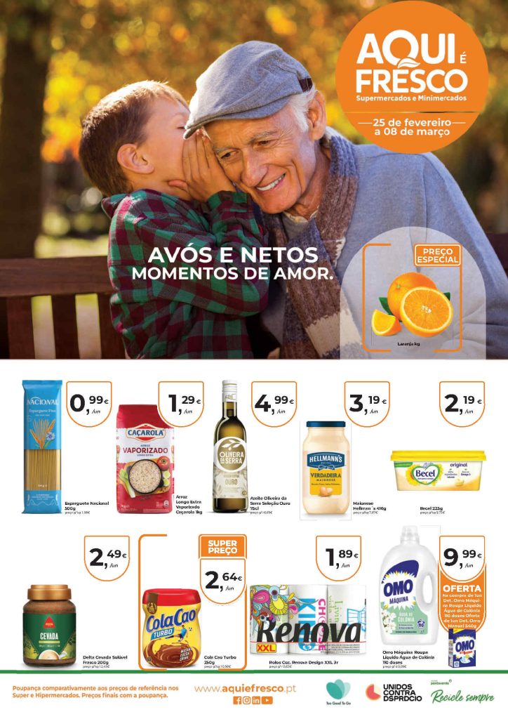 Antevisão promoções nestes supermercados de proximidade. Folheto Aqui É Fresco 25 fevereiro a 8 março,