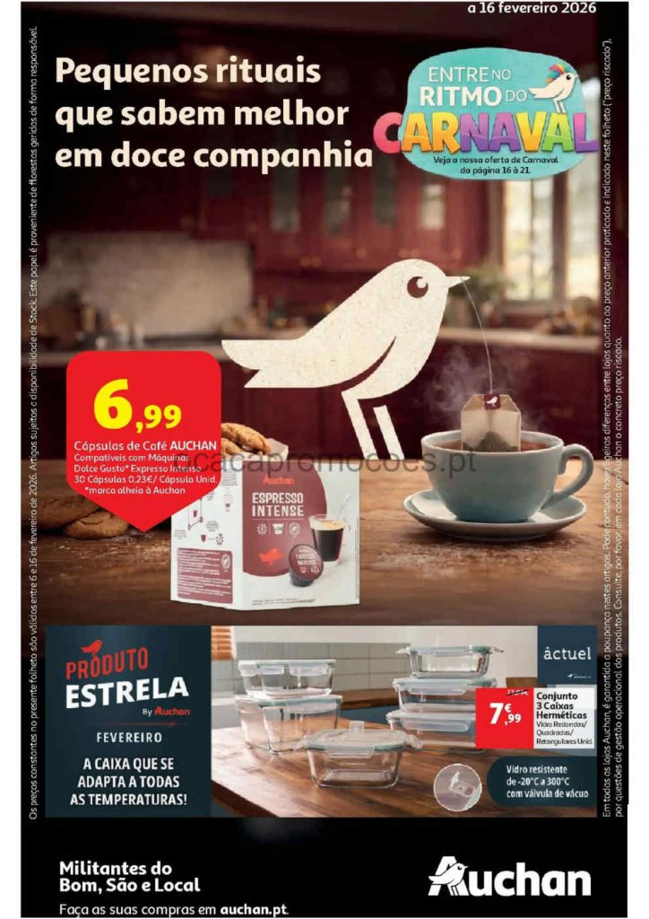 As promoções e descontos alimentar e bazar já no novo folheto. Recordo que os stocks são limitados. As ofertas Auchan estão sempre aqui no O Caça Promoções, atualizado permanentemente com todas noticias. Novas oportunidades Carnaval e mais ofertas incluídas! Consultem os Folhetos. A Antevisão Folheto!