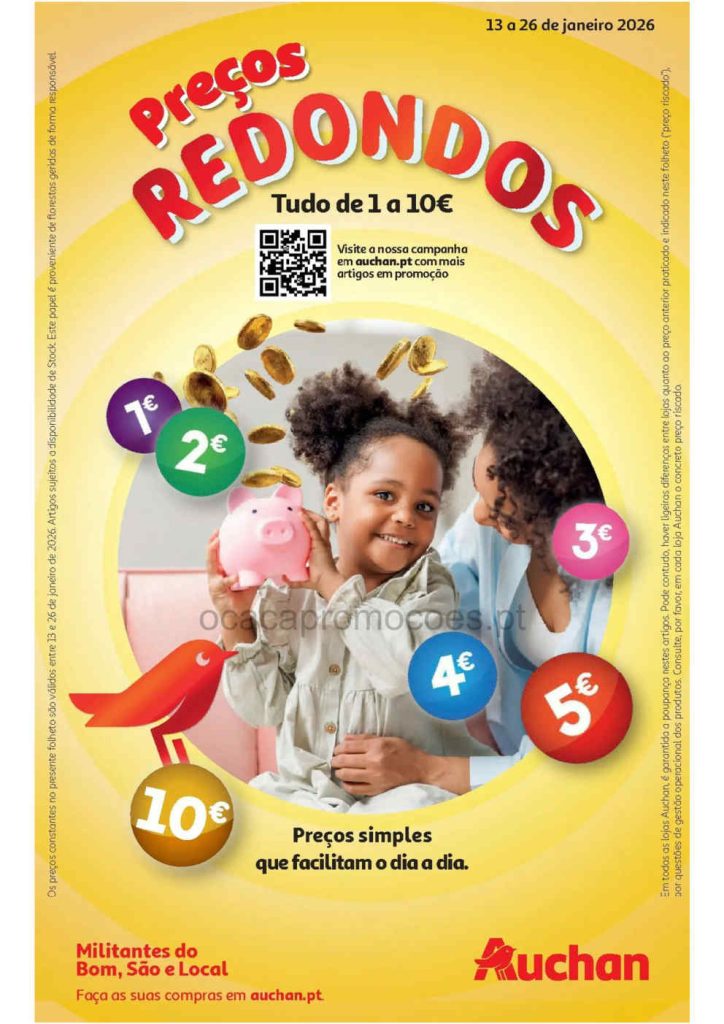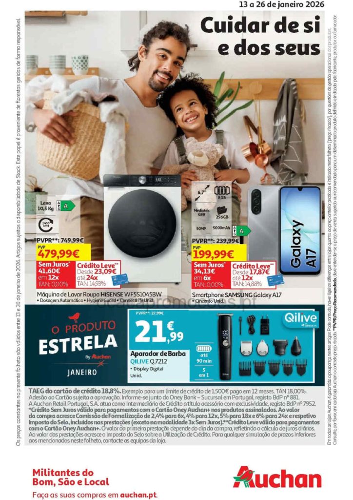 As promoções mostram boa variedade e preços ajustados para os vários orçamentos. Folheto Auchan 13 a 26 de janeiro,
