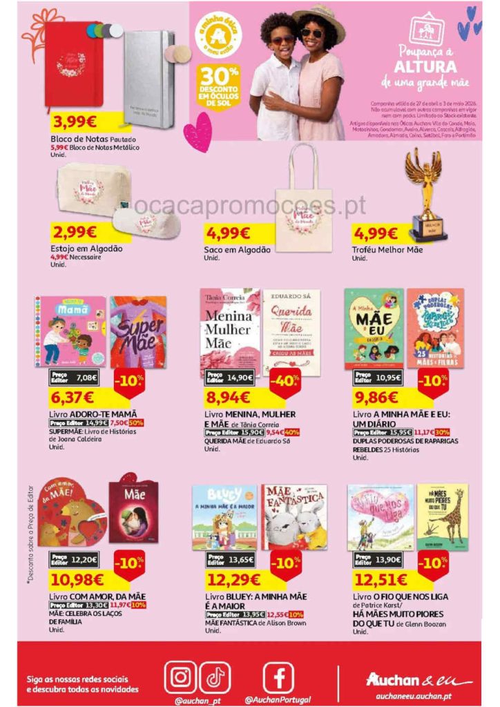Promoções a preços baixos nas várias categorias desde frescos, detergentes, beleza, mercearia e bazar casa, moda, ar livre para o seu dia a dia. Use o Cartão Clube Auchan para otimizar a poupança nas suas compras. Tenha em atenção o preço por dose e por kg. Tudo para a lista. Consultem os Folhetos. A Antevisão Folheto!